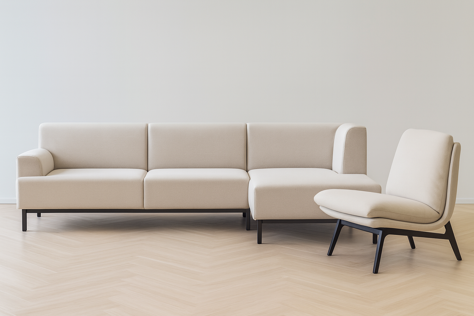 تصميم مينيمال مودرن بدون ذراعين بارزة في الجانب الطويل (Low arm في الجانب القصير فقط)