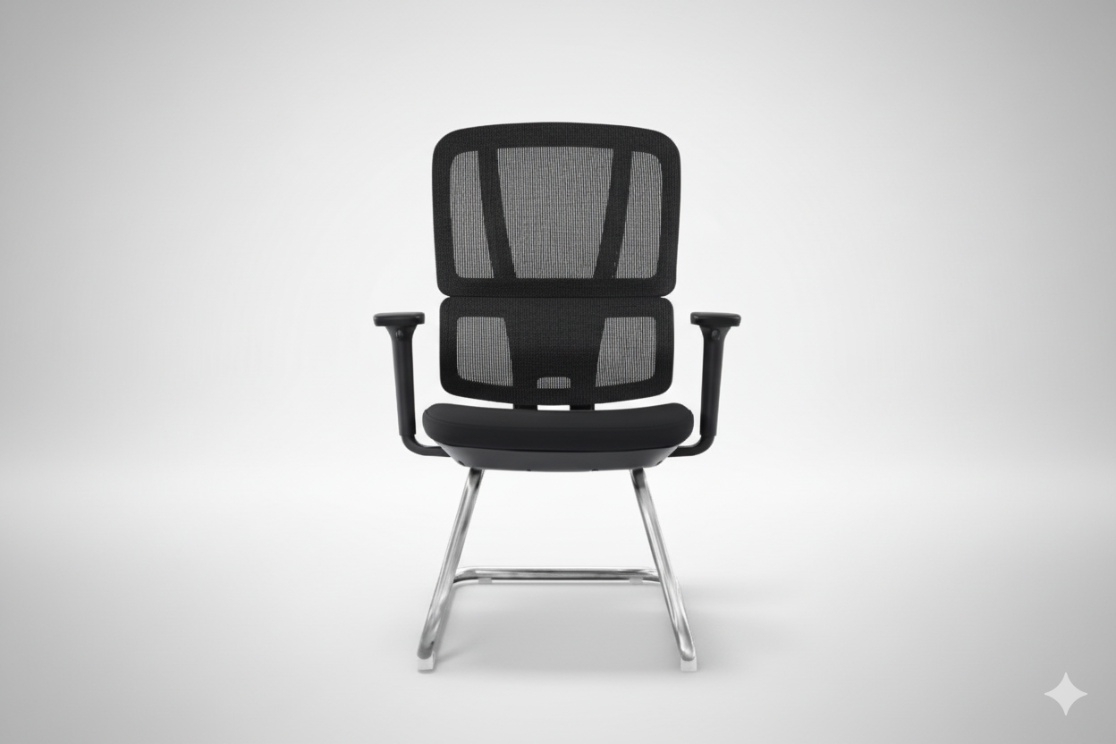 • التصميم العام: كرسي زوار مصنوع من الشبكة (Mesh) بإطار أسود يتماشى مع معايير BIFMA الإرغونومية، مما يجعله خيارًا عمليًا وأنيقًا لاستقبال الزوار.