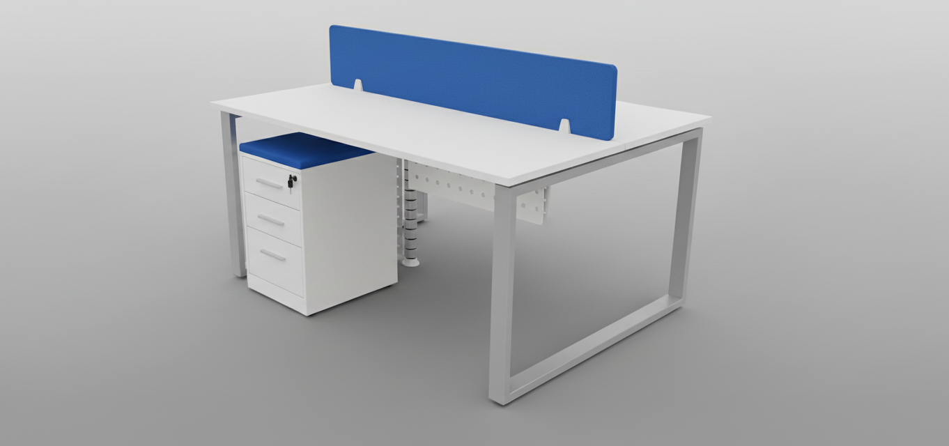 التصميم: محطة عمل لشخصين مزودة بدعامة متحركة بأبعاد 1400 * 1590 * 750 مم (الارتفاع).